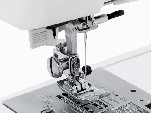 Встроенный заправщик нити облегчит вам трудоемкий процесс. Просто возьмитесь за кончик нити, а нитевдеватель сам протянет ее через ушко иглы.