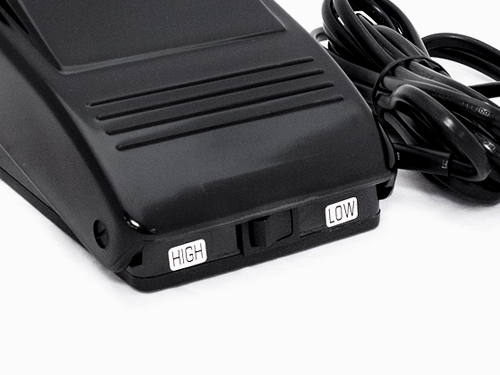 Педаль данной модели имеет клавишу переключения скорости. Вы можете установить высокое значение если вы чувствуете себя уверенно при шитье, а также если требуется выполнение прямых длинных швов. Низкая скорость пригодится для начинающих.